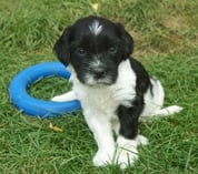 Ihr "Arbeitsname" im Wurf war Socks, weil sie - wie auf dem Foto gut zu erkennen ist - an der linken Vorderpfote eine weisse Socke trägt.